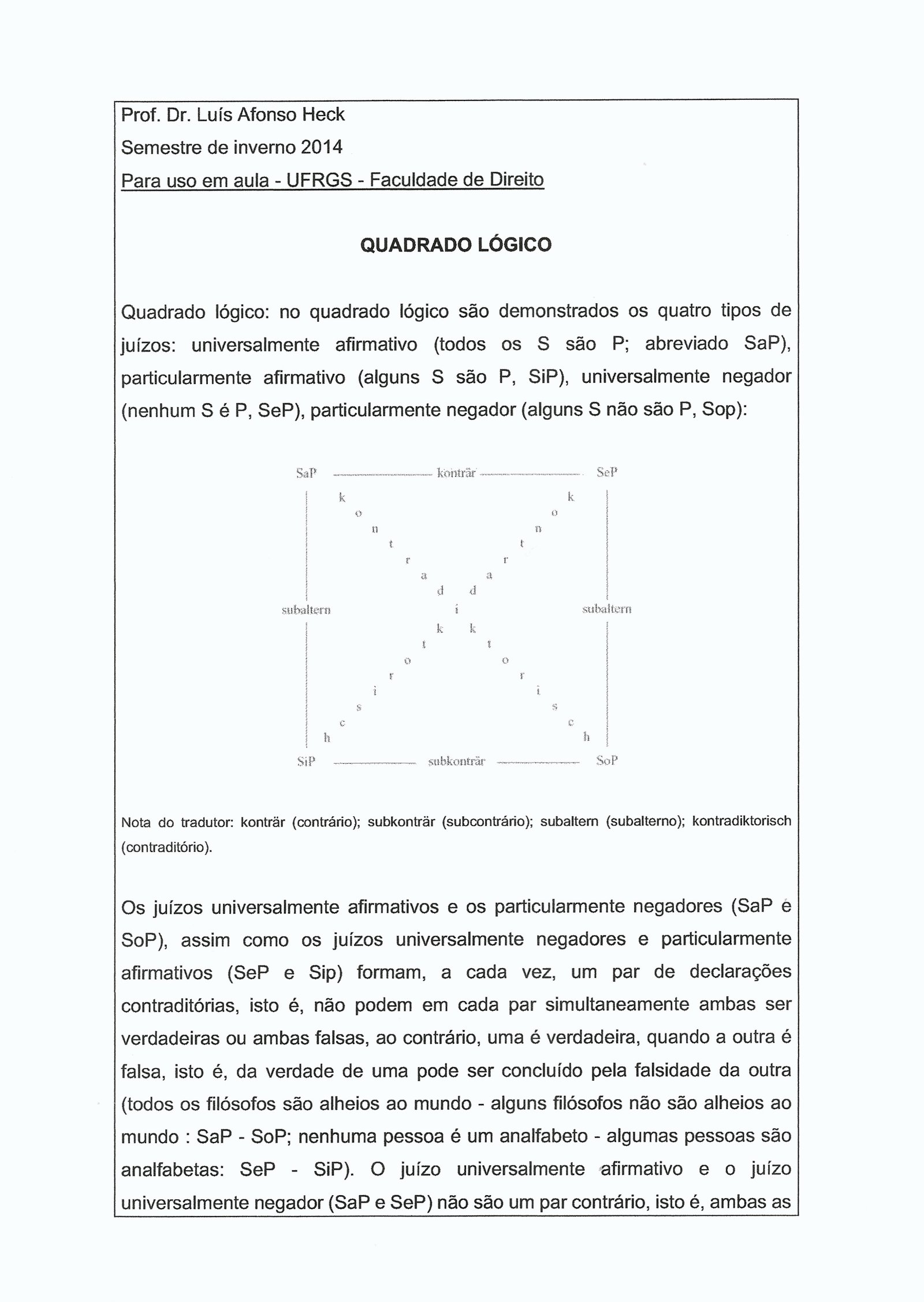Para uso em sala de aula – UFRGS – Faculdade de Direito
