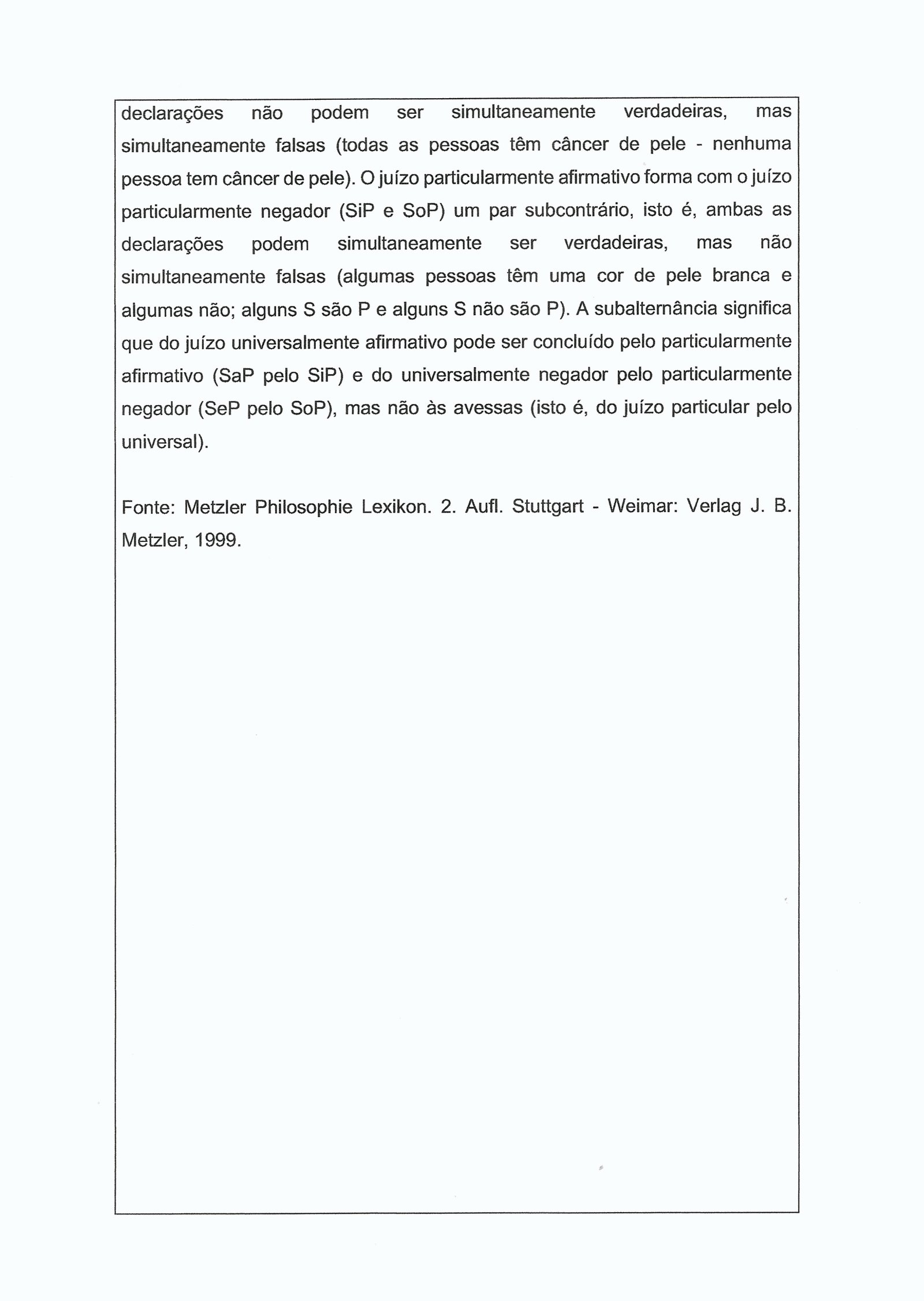 FONTES: Metzler-Philosophie-Lexikon: Begriffe und Definitionen/Hrsg. von Peter Prechtl und Franz-Peter-Burkard. 2. Aufl., Stuttgart; Weimar: Metzler, 1999